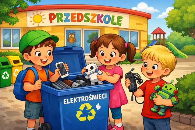 Gminne Przedszkole w Kamionku „Jasia i Małgosi”- zaprasza rodziców do udziału w zbiórce elektrośmieci. Celem akcji jest umożliwienie bezpiecznego i odpowiedzialnego pozbycia się zużytego sprzętu elektrycznego i elektronicznego oraz wspólna troska o środowisko naturalne.